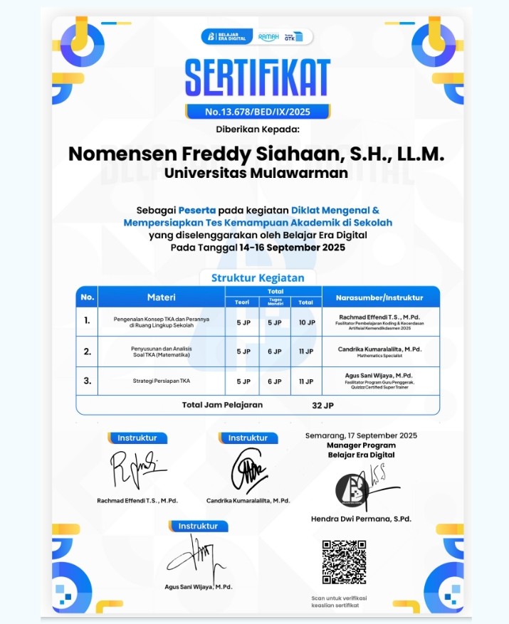DIKLAT MENGENAL DAN MEMPERSIAPKAN TES KEMAMPUAN AKADEMIK DI TEMPAT BELAJAR NOMOR SERTIFIKAT: 13.678/BED/IX/2025 (121.0Kb)