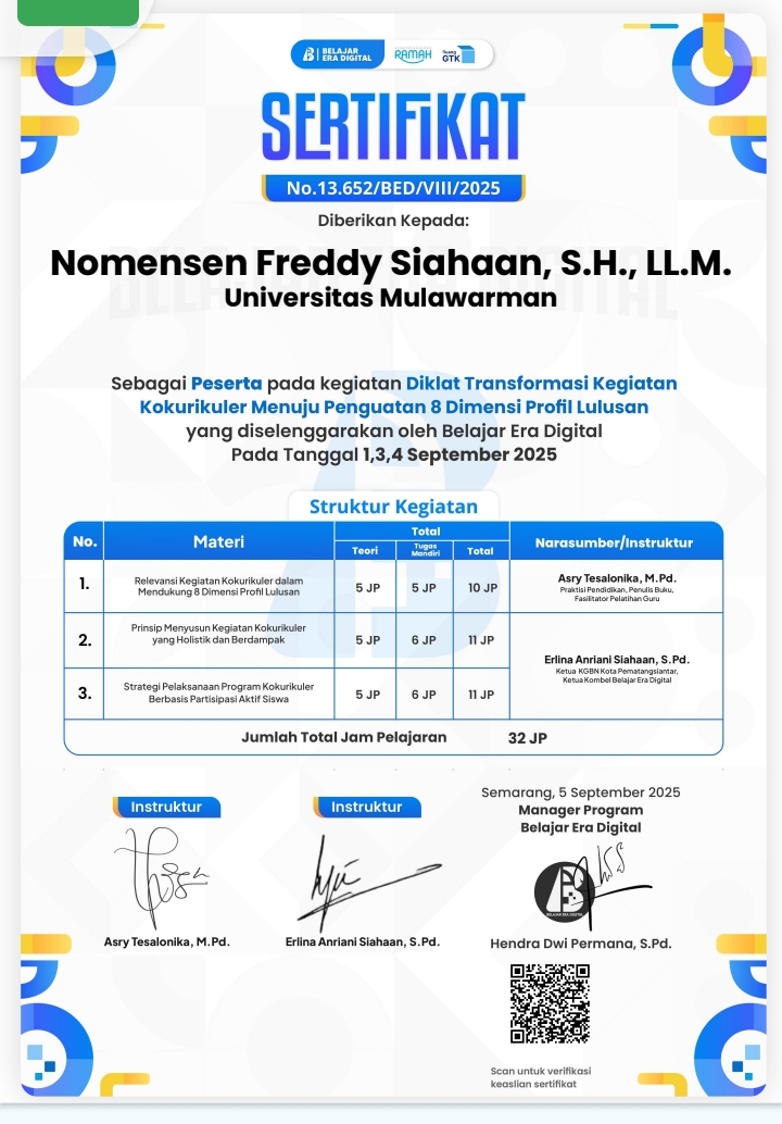 DIKLAT TRANSFORMASI KEGIATAN KOKURIKULER MENUJU PENGUATAN 8 DIMENSI PROFIL LULUSAN NOMOR SERTIFIKAT 13.652/BED//VIII/2025 (292.7Kb)
