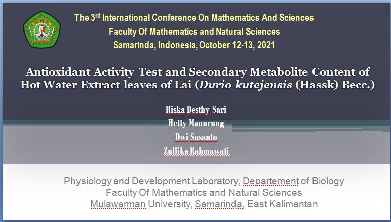 Title: Antioxidant Activity Test and Secondary Metabolite Content of Hot Water Extract leaves of Lai (Durio kutejensis (Hassk) Becc.)