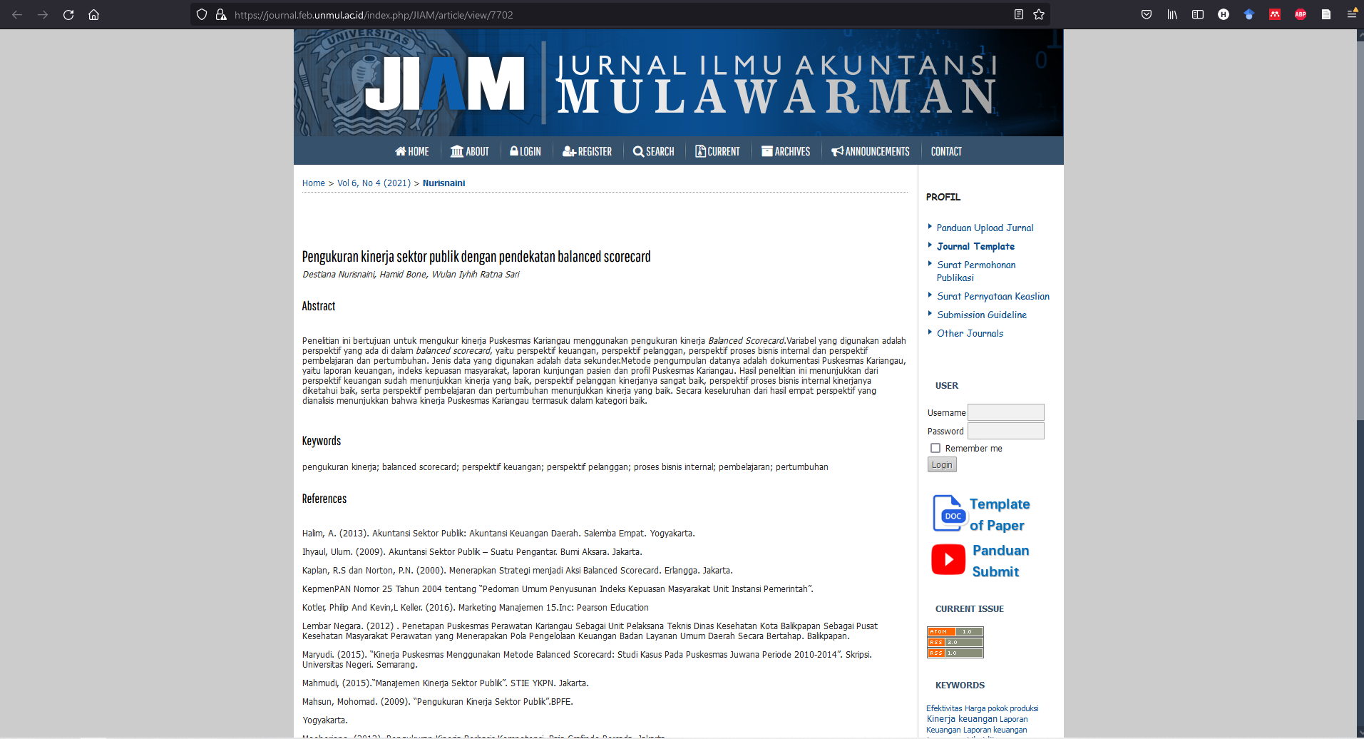 http://repository.unmul.ac.id/handle/123456789/13525| Title: | Pengukuran kinerja sektor publik dengan pendekatan balanced scorecard |