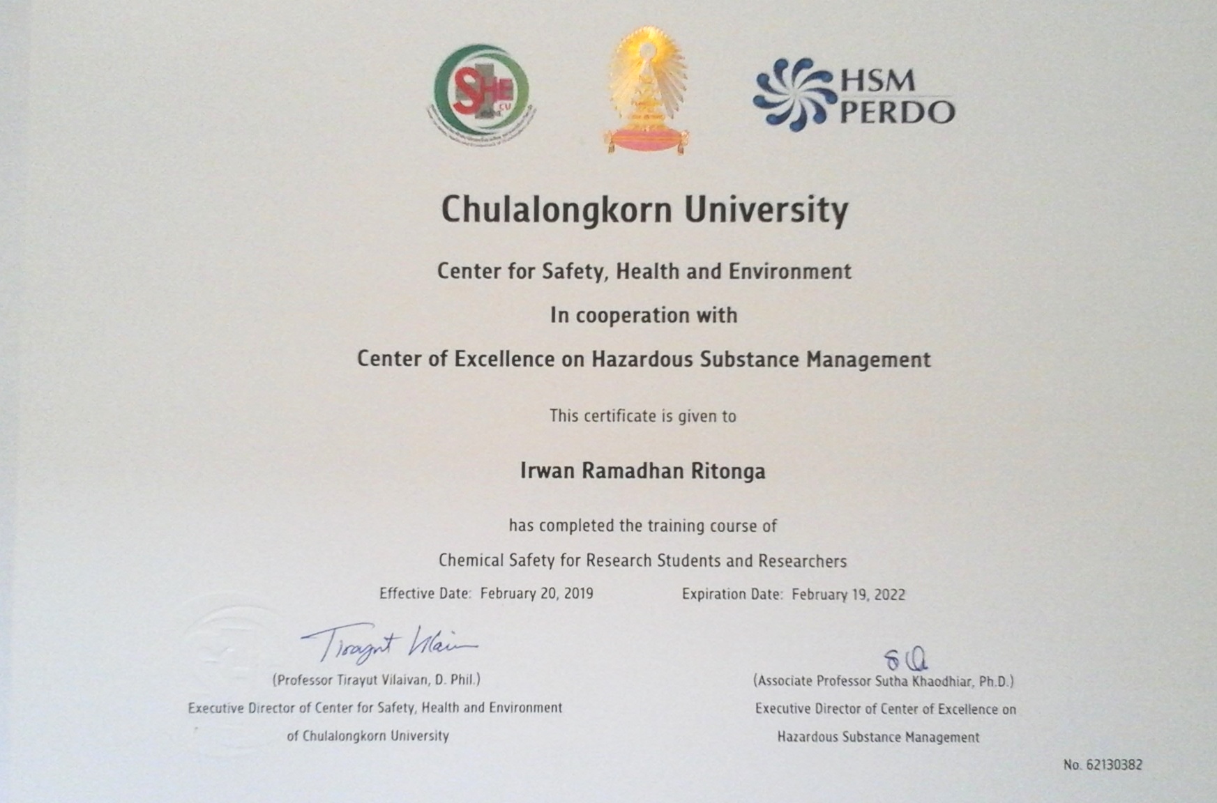 | Publisher: | Center for Safety, Health and Environment in Cooperation with Center of Excellence on Hazardous Substance Management Chulalongkorn university |