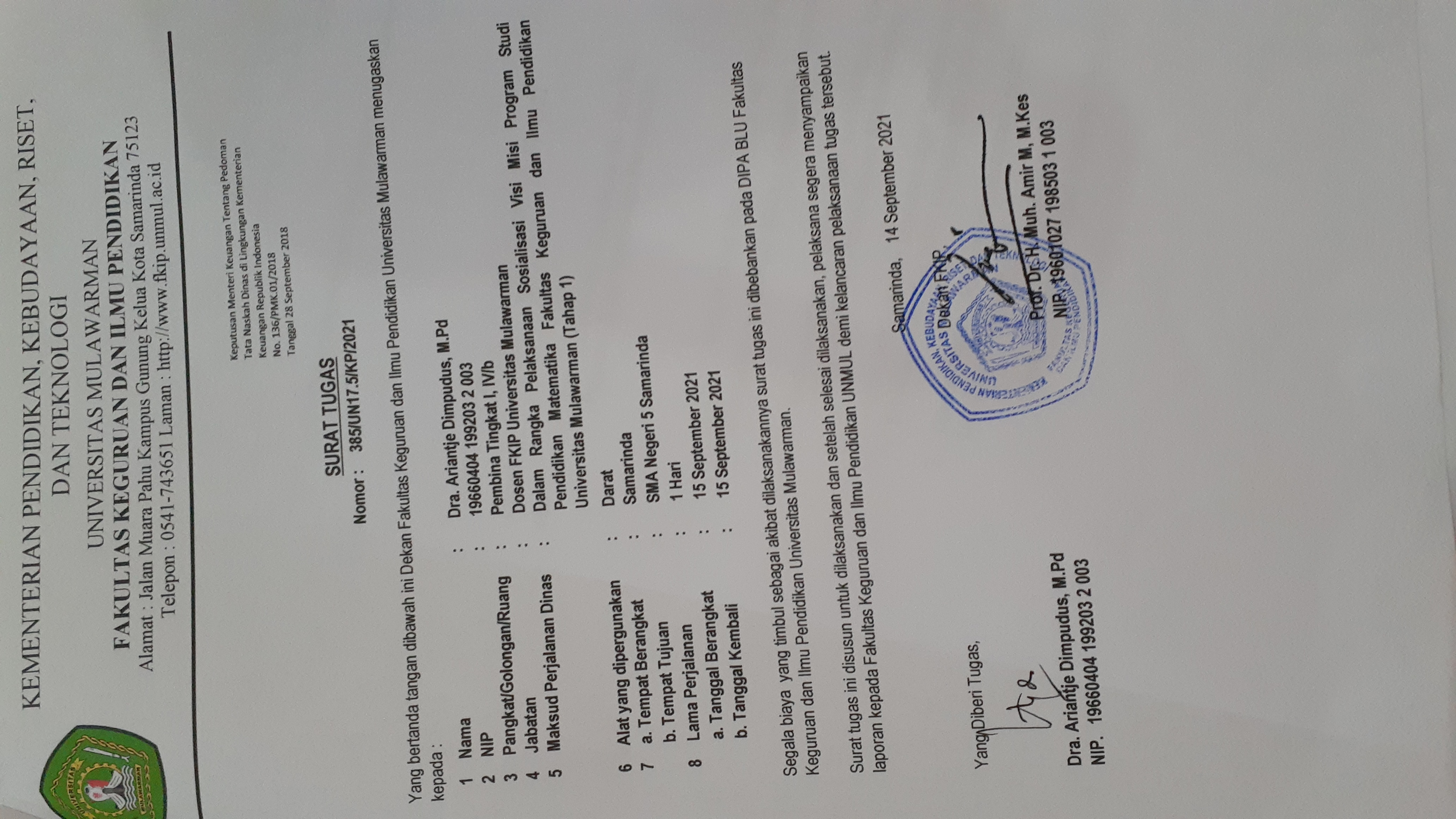 | Description: | Sosialisasi visi-misi program studi pendidikan matematika FKIP Unmul |