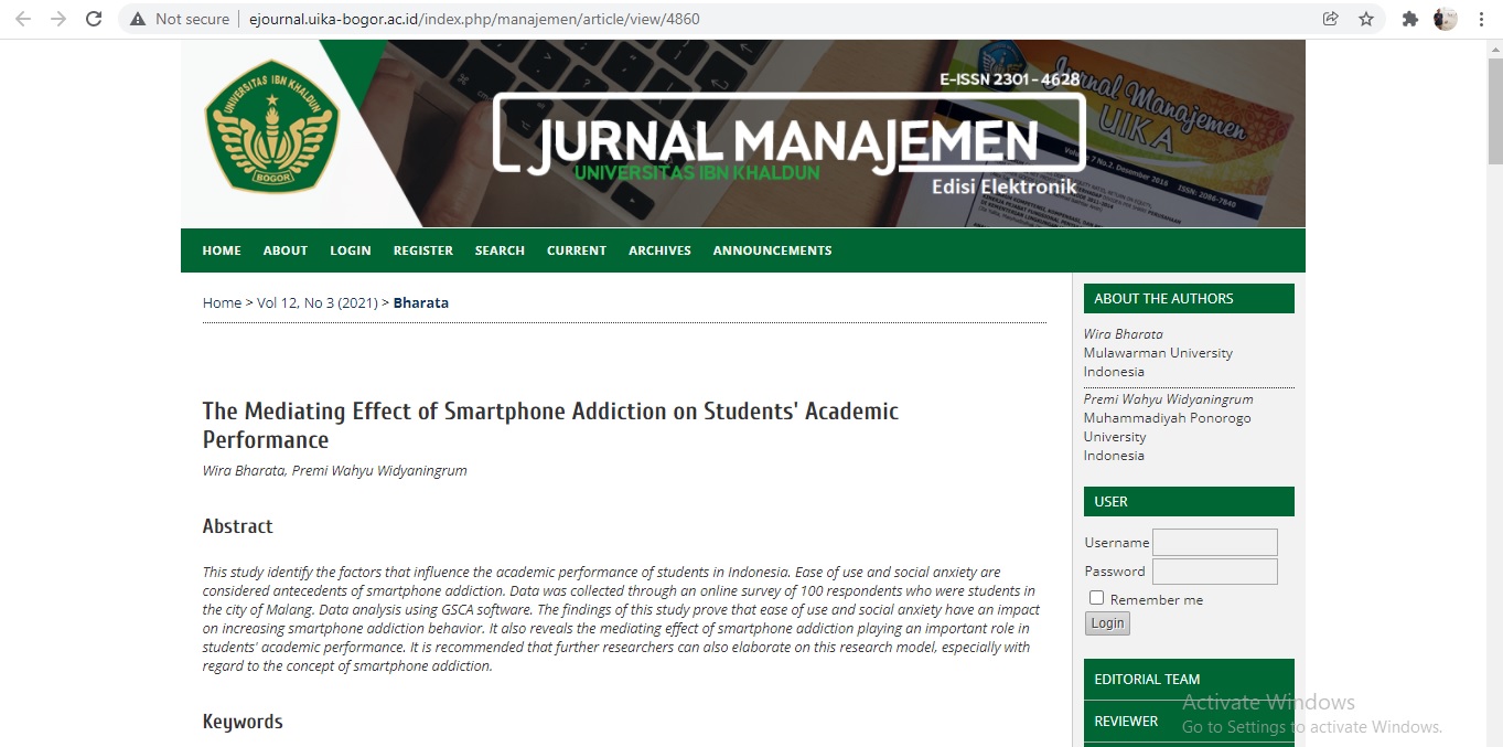 http://repository.unmul.ac.id/handle/123456789/17154| Title: | The Mediating Effect of Smartphone Addiction on Student's Academic Performance |