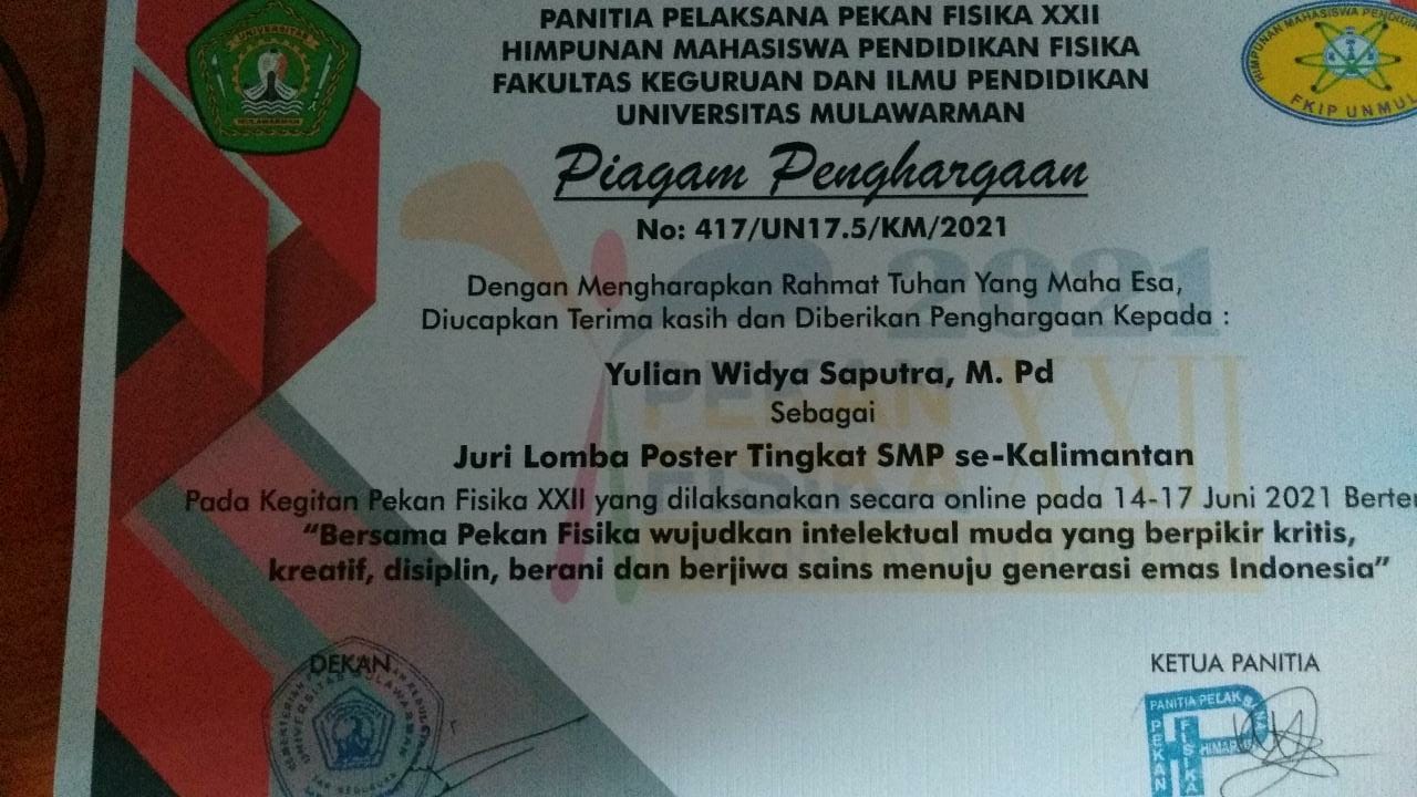 http://repository.unmul.ac.id/handle/123456789/22462| Title: | Juri Poster Tingkat SMP Pekan Fisika |