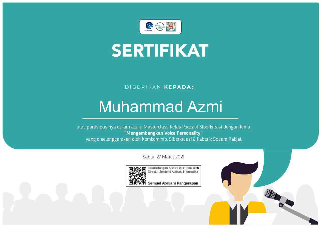 http://repository.unmul.ac.id/handle/123456789/35564| Title: | Masterclass Kelas Podcast Siberkreasi "Mengembangakan Voice Personality" |