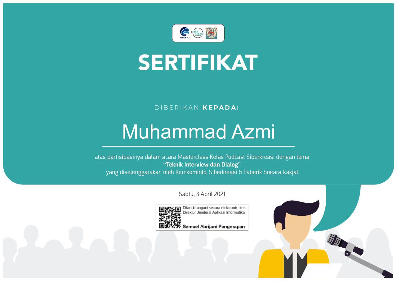 http://repository.unmul.ac.id/handle/123456789/35566| Title: | Masterclass Kelas Podcast Siberkreasi "Teknik Interview dan Dialog" |
