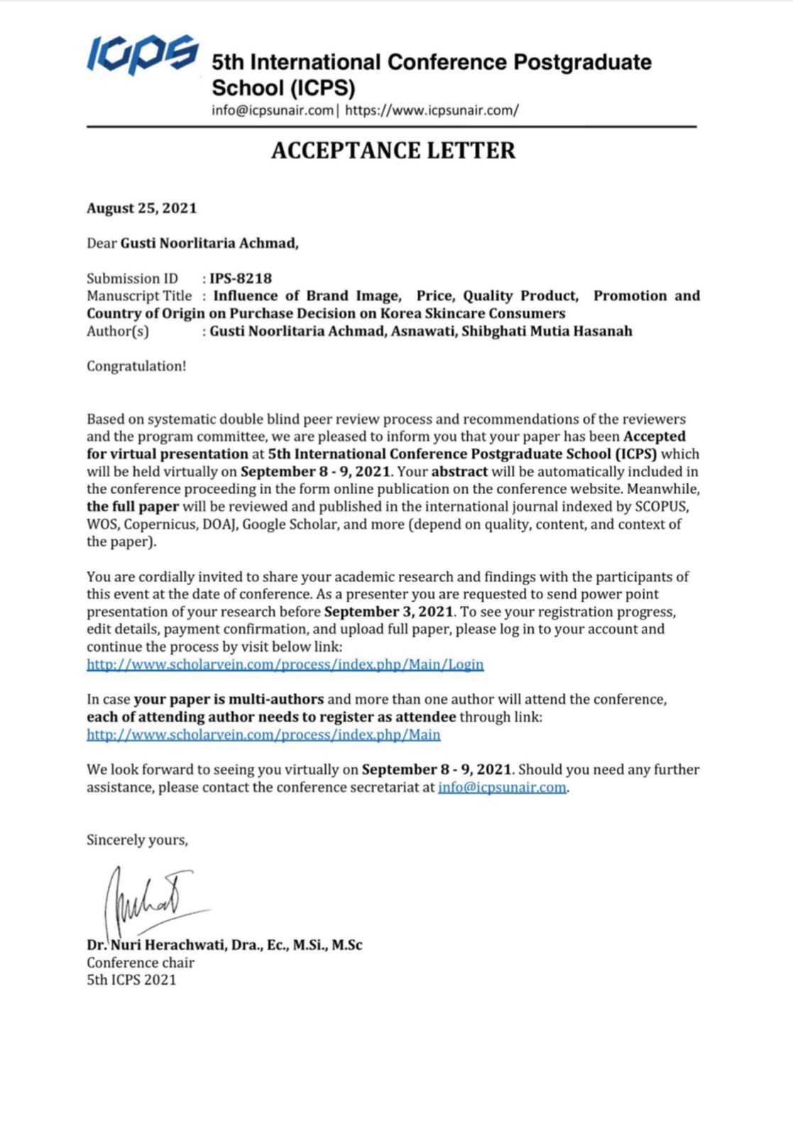 Title: Influence of Brand Image, Price, Quality Product, Promotion and Country of Origin on Purchase Decision on Korea Scincare Consumers